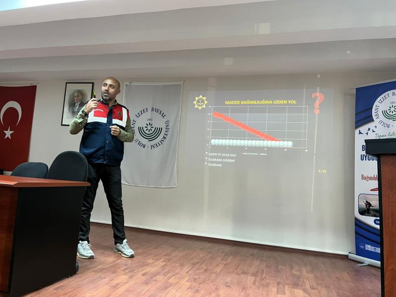 Bolu Abant İzzet Baysal Üniversitesi (BAİBÜ) Bolu Teknik Bilimler Meslek Yüksekokulu’nda, madde bağımlılığı konusunda farkındalık oluşturmak ve gençleri bilinçlendirmek amacıyla “Narkotik Eğitimi” başlıklı bir etkinlik düzenlendi. Program, BAİBÜ Teknik Bilimler Meslek Yüksekokulu, BAİBÜ Bağımlılıkla Mücadele Uygulama ve Araştırma Merkezi ve İl Jandarma Komutanlığı Narkotik Suçlarla Mücadele Şube Müdürlüğü iş birliğiyle gerçekleştirildi.